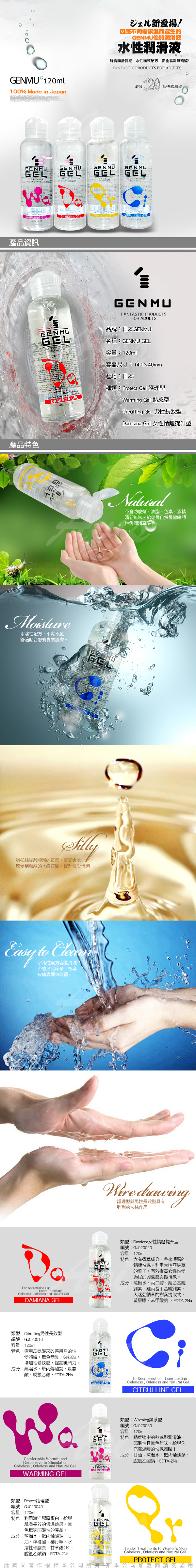 .主商品: 日本GENMU GEL 水性潤滑液 120ml 02 CITRULLINE男性長效凝膠 藍色