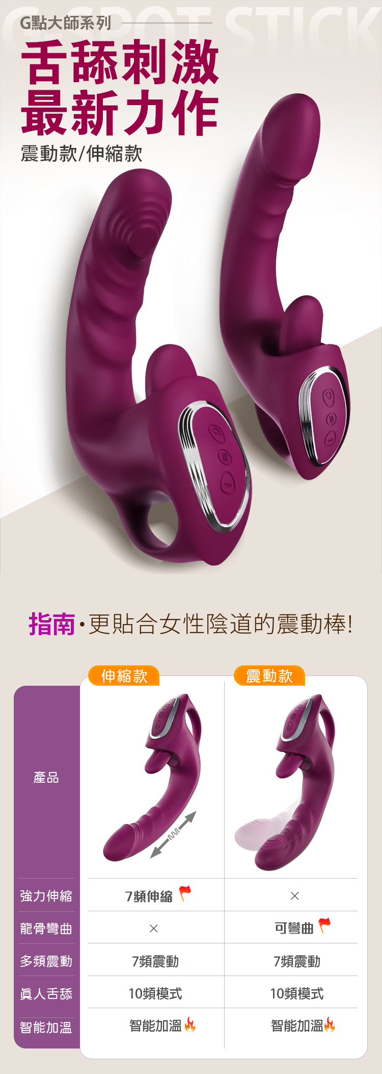 商品功能:10頻舌舔/7頻伸縮/智能恆溫