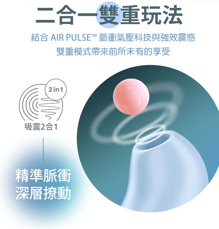 吸震 2 合 1|吸吮+震動雙重體驗,雙倍滿足。